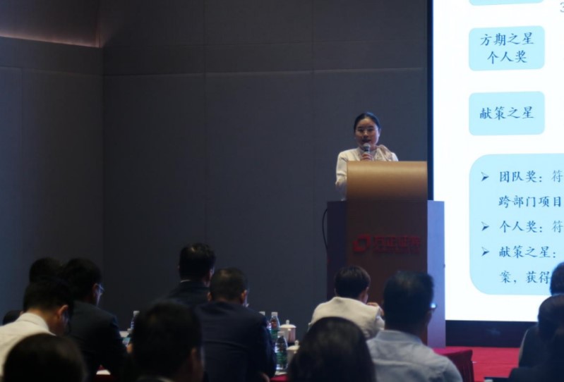 為激勵(lì)公司每一位員工能夠躬身入局參與到公司的變革轉(zhuǎn)型中,分享變革進(jìn)步的榮譽(yù)與成果,本次企業(yè)文化節(jié)特別策劃開展“股指專項(xiàng)業(yè)務(wù)競賽”和“方期之星”月度評選,分別面向分支機(jī)構(gòu)業(yè)務(wù)人員和公司總部職能人員開展。會上,兩項(xiàng)活動(dòng)的負(fù)責(zé)人也分別上臺對活動(dòng)進(jìn)行宣導(dǎo)。